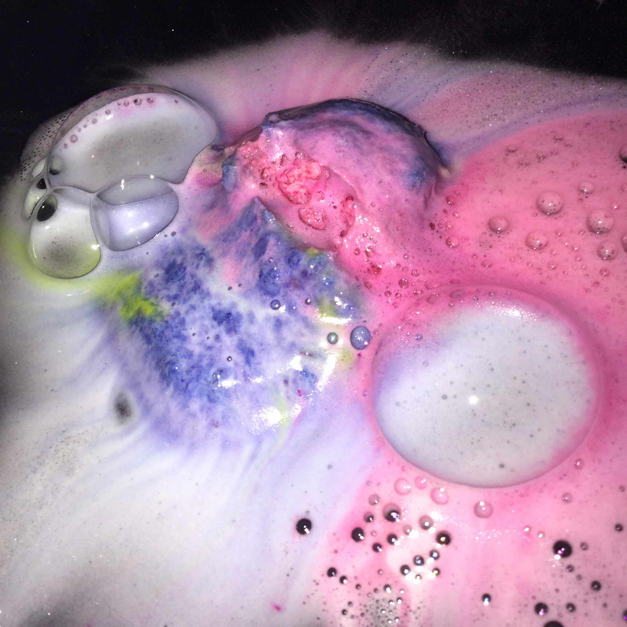 Another surprise that in my opinion is the cherry on top of this amazing bath bomb, is the addition of miniature confetti stars, they’re tiny and hard to get a photo of but you can see a few in the photo above.